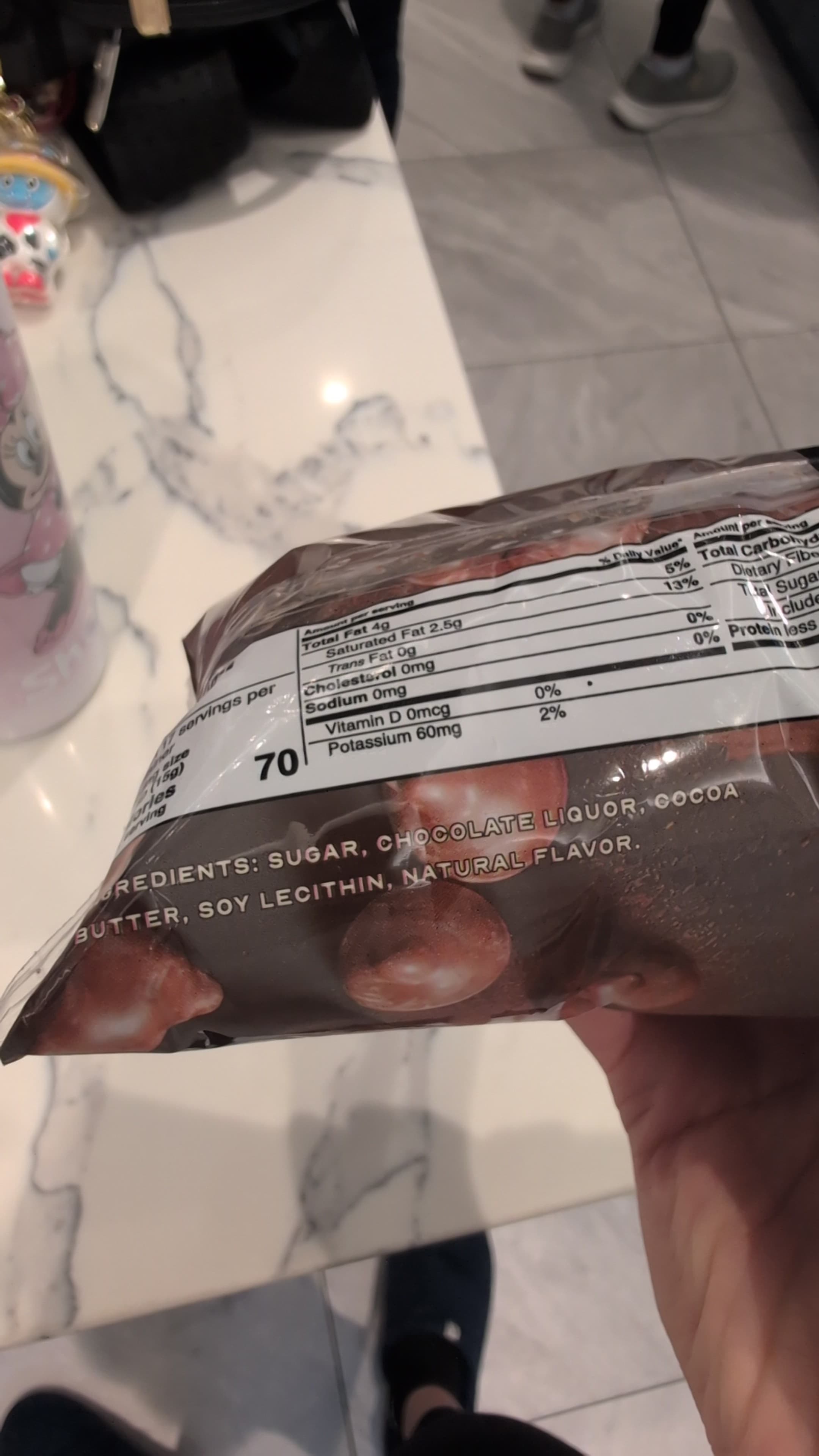 SUGAR, CHOCOLATE LIQUOR, COCOA BUTTER, SOY LECITHIN, NATURAL FLAVOR.