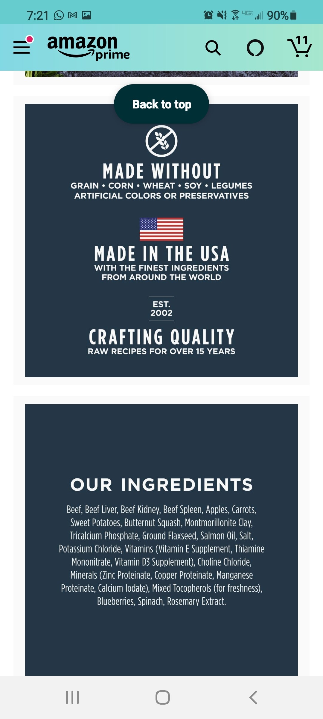 Beef, Beef Liver, Beef Kidney, Beef Spleen, Apples, Carrots, Sweet Potatoes, Butternut Squash, Montmorillonite Clay, Tricalcium Phosphate, Ground Flaxseed, Salmon Oil, Salt, Potassium Chloride, Vitamins (Vitamin E Supplement, Thiamine Mononitrate, Vitamin D3 Supplement), Choline Chloride, Minerals (Zinc Proteinate, Copper Proteinate, Manganese Proteinate, Calcium Iodate), Mixed Tocopherols (for freshness), Blueberries, Spinach, Rosemary Extract.