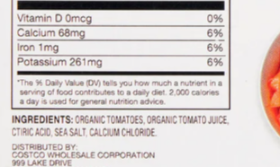 Crushed tomatoes contains: organic tomatoes, organic tomato juice, citric acid, sea salt, calcium chloride.