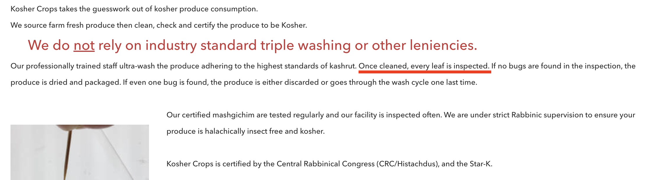 Kosher Crops has the Star-K and CRC certification and some of their products say that every leaf is checked. I don’t know why some packages don’t say that every leaf is checked.