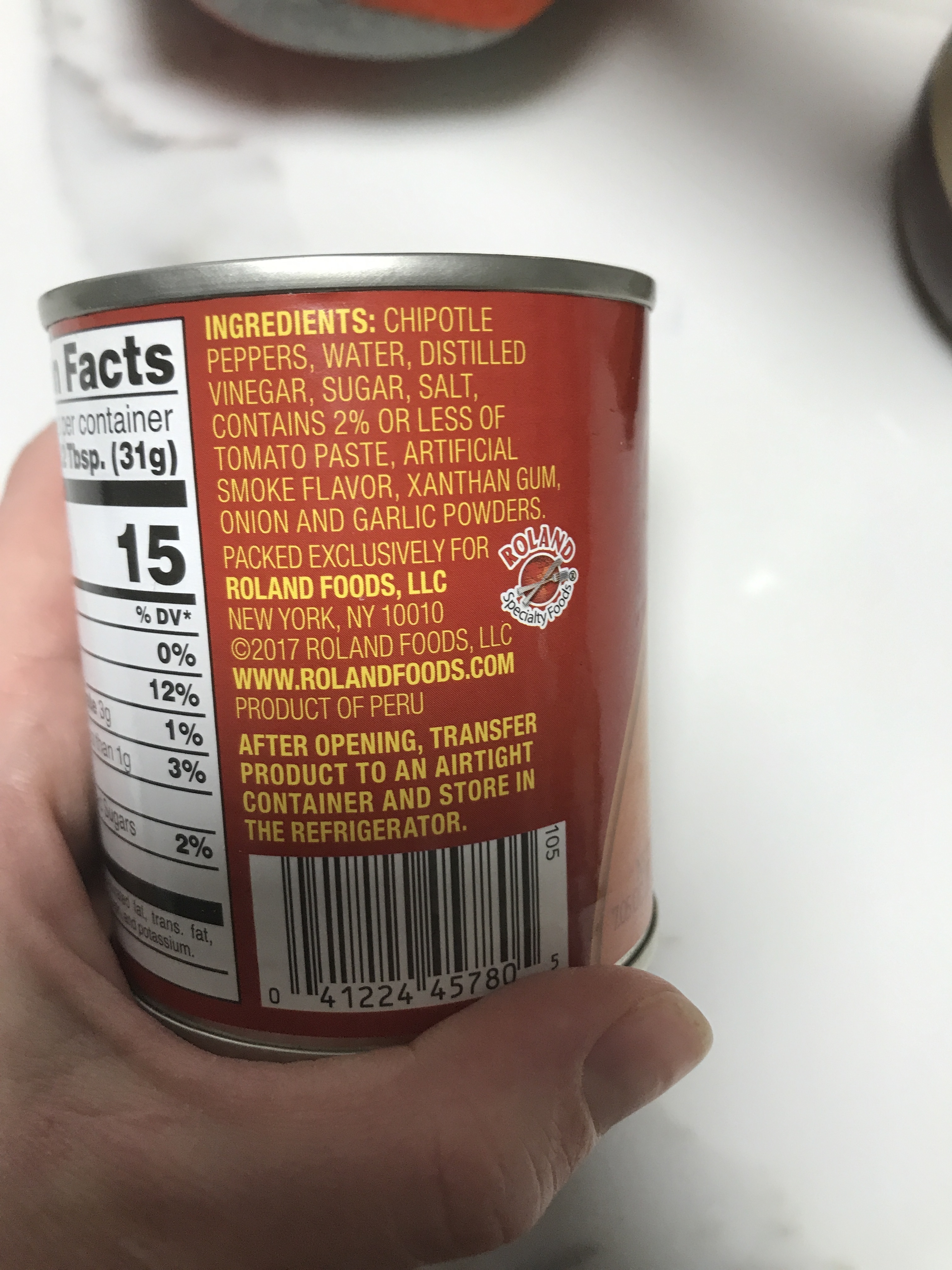 Kosher for Pesach? Ingredients: Chipotle Peppers, water, distilled vinegar, sugar, salt, contains 2% or less of tomato paste, artificial smoke flavor, xanthan gum, onion and garlic powders.