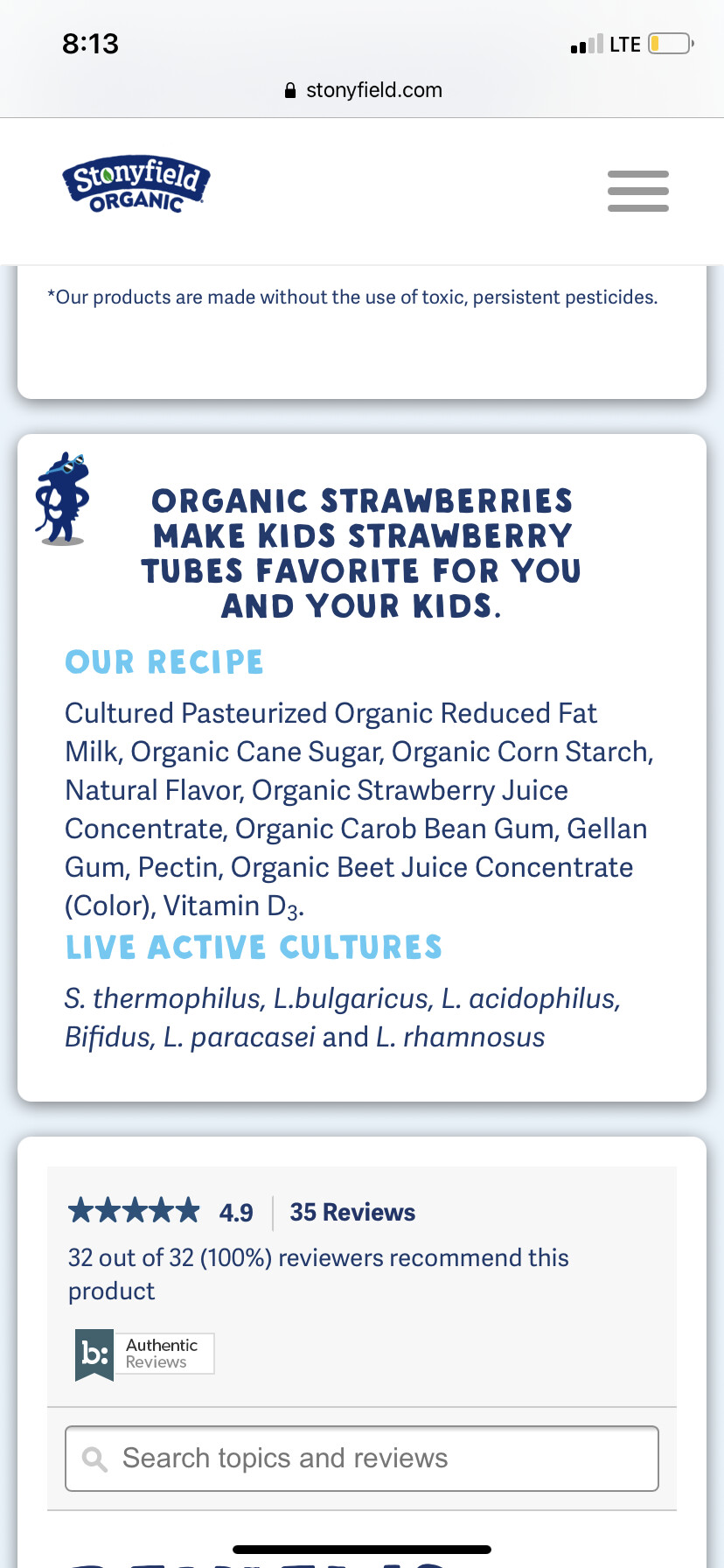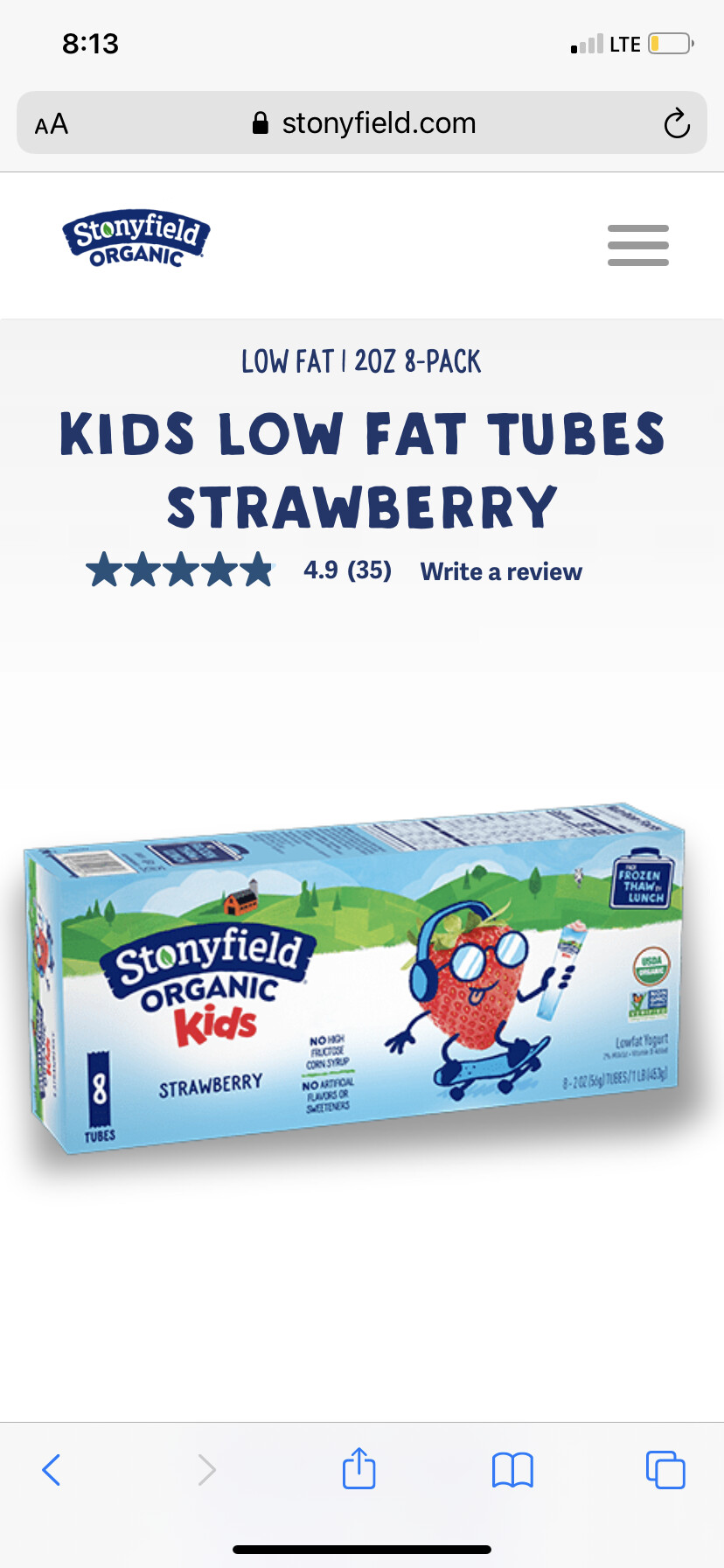 Stonyfield strawberry yogurt tubes