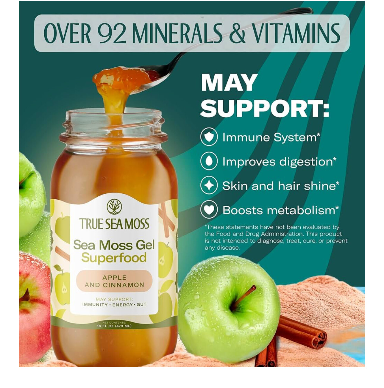 Purified Water, Apple Juice from Concentrate, Dehydrated Sea Moss, Apple Puree, Cinnamon Powder, Lime Puree, Monk Fruit Juice Concentrate, Ascorbic Acid