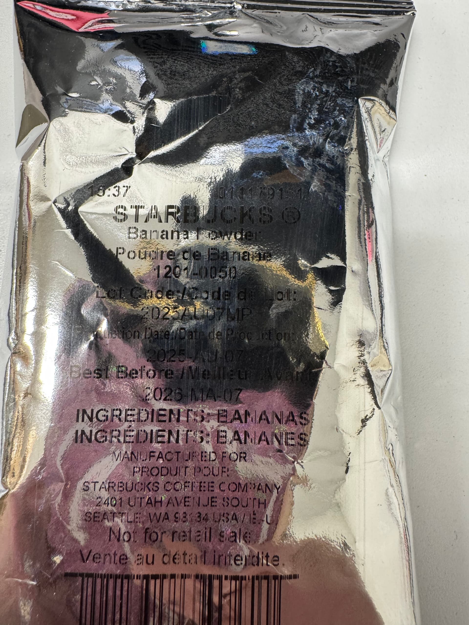 Two new ingredients at Starbucks. Are they kosher? See pictures attached. (Hard to see with the silver packaging, but the banana powder has bananas only in the ingredients. The Whey Protein just says contains milk.)